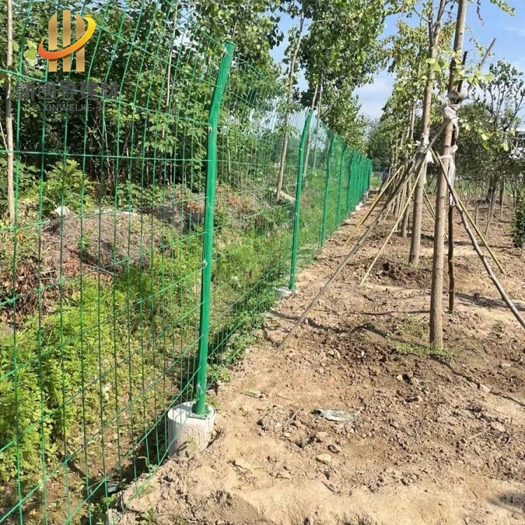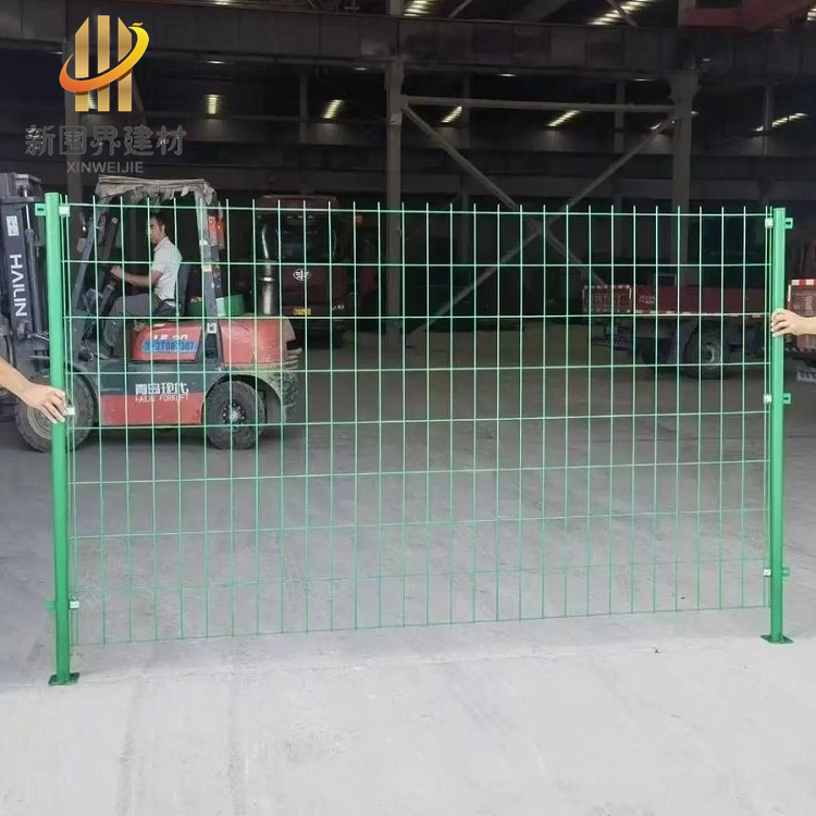 双边丝护栏网是一种采用低碳钢丝制成的防护隔离设施,具有结构简单、用料少、加工成本低的特点。双边丝护栏网主要用于制作围栏和公路铁丝框架,如高速公路护栏网。本产品有现货供应,也支持加工定制,规格:尺寸常见为1800*3000mm,丝径范围3.5mm~6.0mm,网孔90mm*170mm。采用浸塑表面处理,材质为低碳钢丝,颜色为绿色。立柱直径48mm,非常适合作为护栏网使用。安装方式简便,采用预埋式或者法兰固定。
