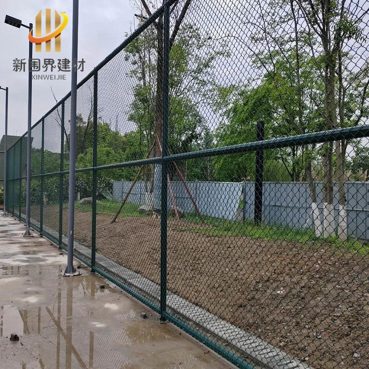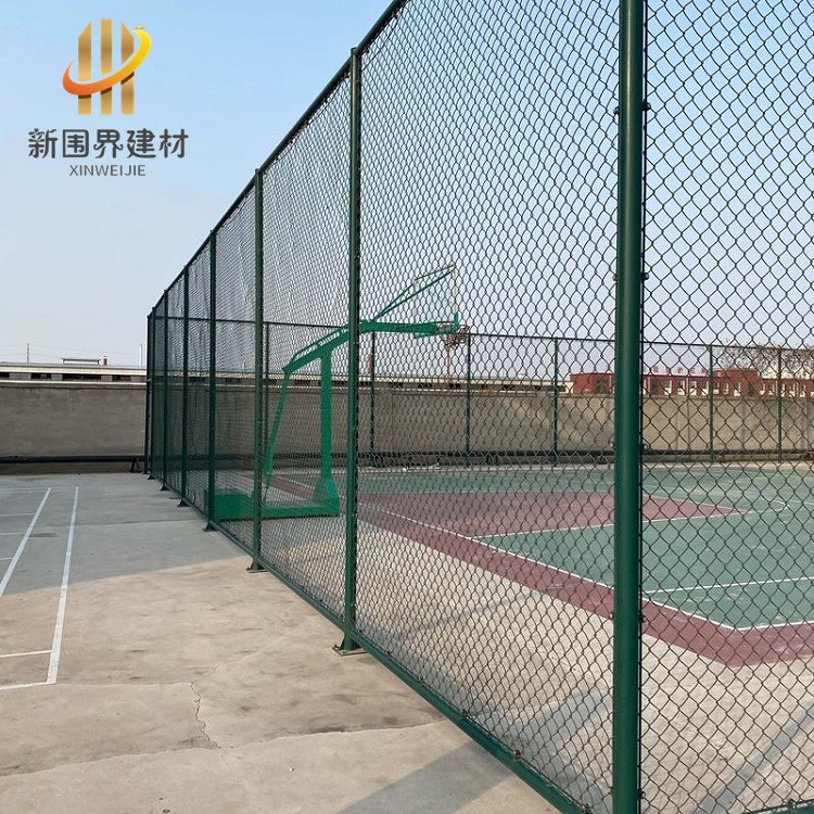 球场护栏网是以勾花网为核心结构的体育场地防护系统,主要用于网球场、篮球场等运动场地的安全隔离。其主体采用低碳钢丝经编织焊接工艺制成,表面通过电镀、热镀或浸塑工艺处理,形成耐候性强、抗腐蚀的防护层。标准网孔规格为50mm×50mm至70mm×70mm,网高可达4米,配备φ60mm圆管立柱,支持预埋式和法兰盘两种安装方式,满足不同场地基础条件需求。该系统通过勾花编织结构和包塑工艺实现抗冲击性能,在保障运动安全的同时具备地形适应性强、运输便捷等经济特性。