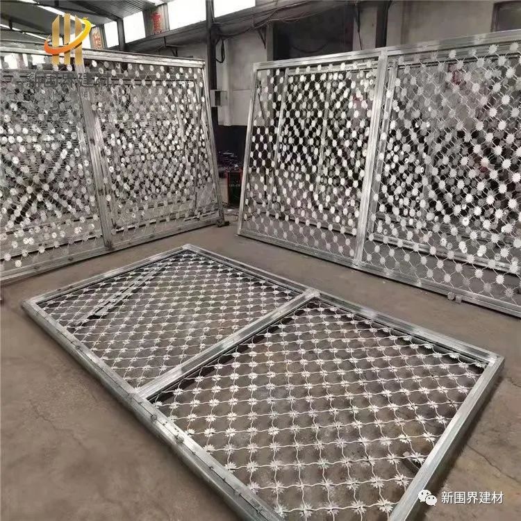 监狱梅花刺片隔离网、监狱防攀爬钢丝网、太阳花刺美格网