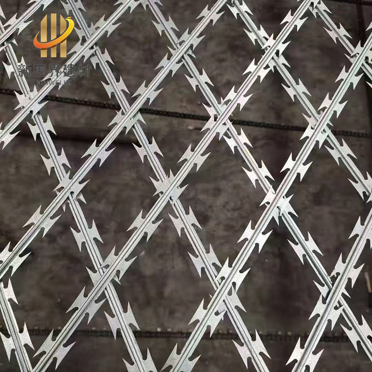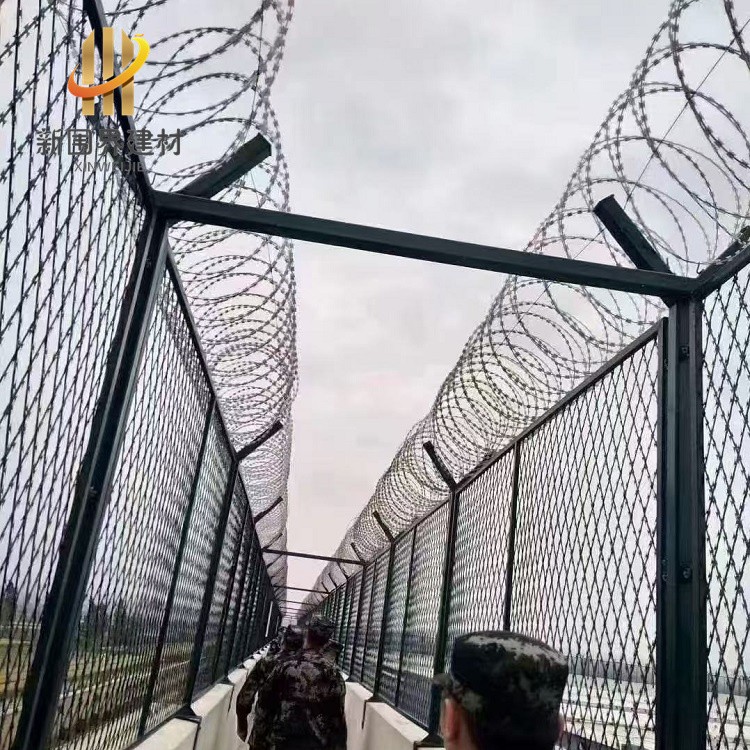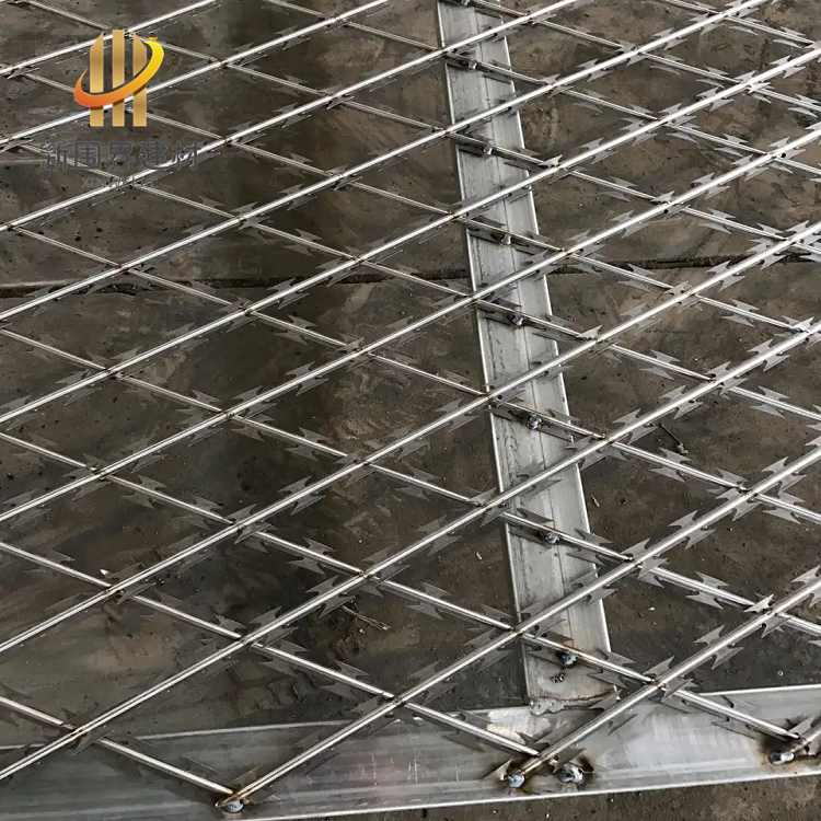 菱形焊接刀片刺网作为高安全防护网,采用大直径高强度合金钢丝制作,具有防攀爬、抗冲击、抗剪切特性和良好的震慑作用,专用于监狱监区、看守所、警戒线、军事基地等高安全领域。