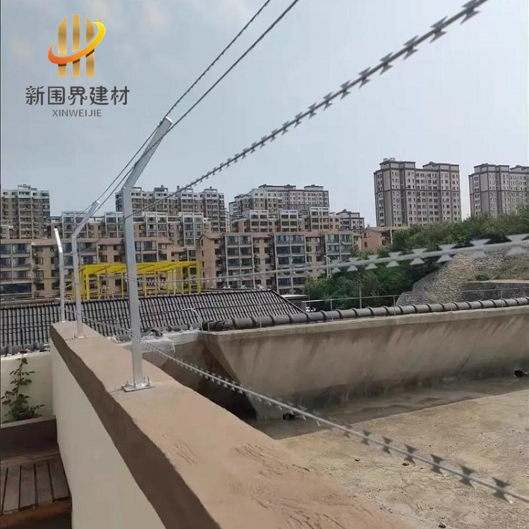 主要应用场所:公共与社区安全:广泛安装于公园围墙、学校围墙、小区围墙及机关单位围栏,既能有效防止非法攀爬,又能保持围墙外观整洁。高安全区域:用于监狱监区、军事基地、边境线等场所,其锋利刀片能形成强烈心理威慑,显著降低翻越风险。商业与工业场所:应用于银行、工厂、工业园区的防护,保护资产免受盗窃或破坏。住宅与度假区:别墅、私人住宅的围墙、门窗或阳台常加装此类刺绳,增强家庭安全;度假村外围栏也可使用,防止入侵。农业与特殊环境:果园、农田用其防动物破坏或人为偷盗,部分设计还可针对管道(如水管、燃气管)安装,形成全方位防护。